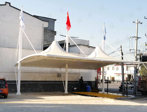 安全、寿命长等。应用于大型体育场馆、入口廊道膜结构遮阳、购物场天棚张拉膜、娱乐场景观膜结构、停车场膜结构雨棚、展览会场索膜、植物观光园广场膜结构等建筑。